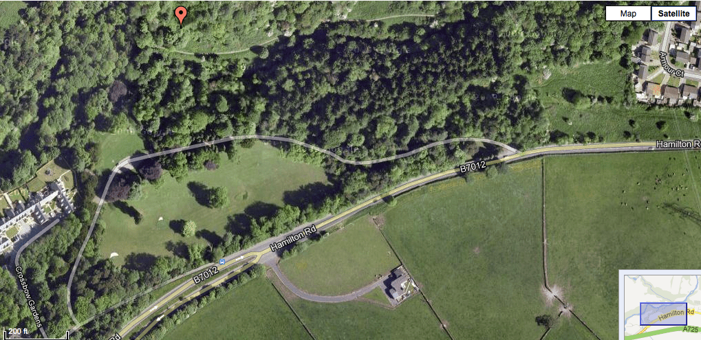 In December 2008, local Blantyre resident, James Brown re-examined the rock face and discovered what is without doubt a cup & ring marking. The exact location of these marks, is noted in our google earth image below: