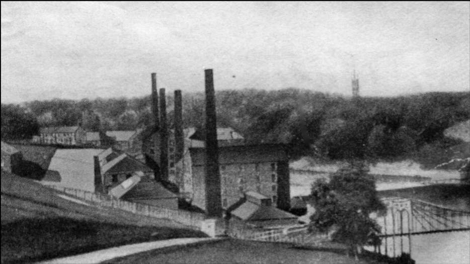 “The line between Glasgow and Blantyre, a distance of some seven miles, passes through a delicious tract of country. There are two intervening stations, Rutherglen and Cambuslang, at both of which we stop, although we are somewhat surprised to observe that no passengers are either taken up or set down, while the booking-offices have rather a dreary do-little appearance. We should imagine, indeed, from the limited extent of these towns—the condition of their inhabitants, who are principally weavers, miners, or agricultural labourers—and the comparative shortness of their distances from the city, that the returns from either will cut but a shabby figure in the sum total of the company’s revenue. There are several fine views of the Cathkin and Dychmont hills from the line, looking southward; while the vale of Clyde, with occasional glimpses of its waters, forms the principal attraction to the north. In about half-an-hour after starting, we are set down at Low Blantyre, which we immediately proceed to inspect. This neat and cleanly little village is finely situated on a high bank which overlooks the Clyde, here a beautiful stream about eighty yards in width. The houses, which are arranged in squares and parallelograms, are the property, and entirely occupied by the operatives of Messrs. Henry Monteith & Co., whose extensive mills and dyeworks are immediately adjacent. Every attention seems to have been paid by this eminent firm to the moral and physical welfare of the inhabitants. They have erected a chapel in connection with the Established Church, capable of accommodating 400 sitters; and we understand that they annually contribute a handsome sum towards the maintenance of the clergyman. During the week the edifice is used as a schoolhouse, for the education of the village children; the teacher being partly supported at the expense of the Company. All the means and appliances of cleanliness, to boot, have been apparently provided for the population. An abundant supply of water, for culinary and other purposes, is furnished from the works; while an extensive building, with a spacious green attached, affords every facility for the necessary scrubbing and bleaching. Altogether this appears to be quite a model of a manufacturing village; everything in apple-pie order—the tenements comfortable and tidy-looking—and the inhabitants seemingly healthy and cheerful. The oldest of the Blantyre Mills was erected in 1785 by the late Mr. David Dale and his partner Mr. James Monteith. Another was built in 1791. Shortly thereafter, premises for the production of the beautiful Turkey-red dye, for which the firm has long been celebrated, were erected; and gradually, from time to time since that period, the establishment has been extending, until now, we believe, upwards of 210 horse-power is required for the propulsion of the machinery, and about 1,000 individuals are engaged in conducting the various operations.”