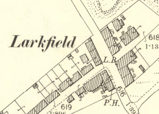 Larkfield is the area in Blantyre immediately adjacent to Hunthill, Barnhill and Stonefield. It centres around the current bing, the previous site of a colliery and encompasses much of the Scottish Special Housing estate and Watson Street. However, on old maps, the actual Lark field was the one where High Blantyre Primary School is built. I’ve been asked recently by both Blantyre folk, Gary Campbell and Mary Anderson if i knew anything about a bakery once there. Here is the known history on that little building.